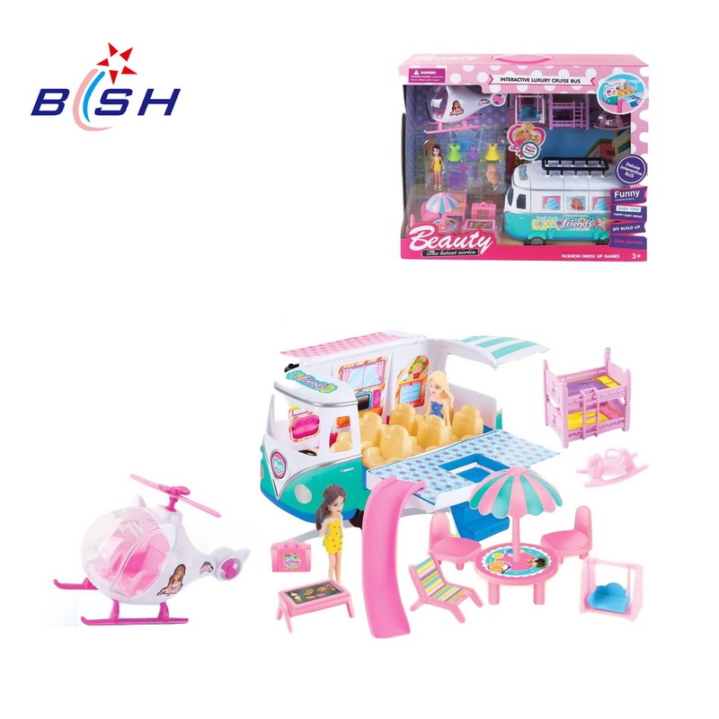 סט יופי אוטובוס בחוף ובובות עם אביזרים